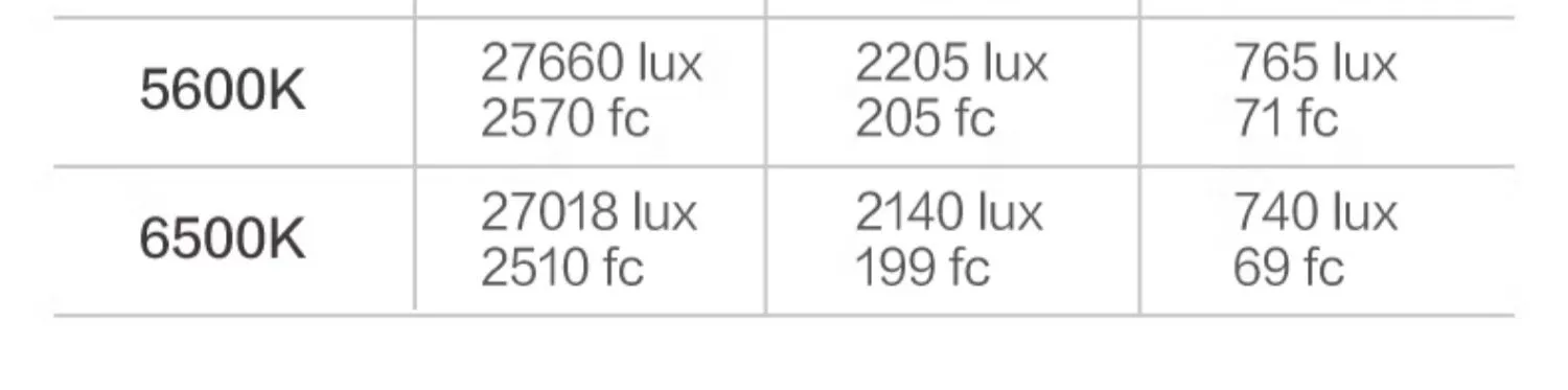 FC60B 提供 2700K 至 6500K 的可調色溫範圍,讓使用者能夠根據需求調整光源色溫。此外,該燈具搭配迷你反光罩時,最大亮度可達 12,510 lux,滿足各種拍攝需求。