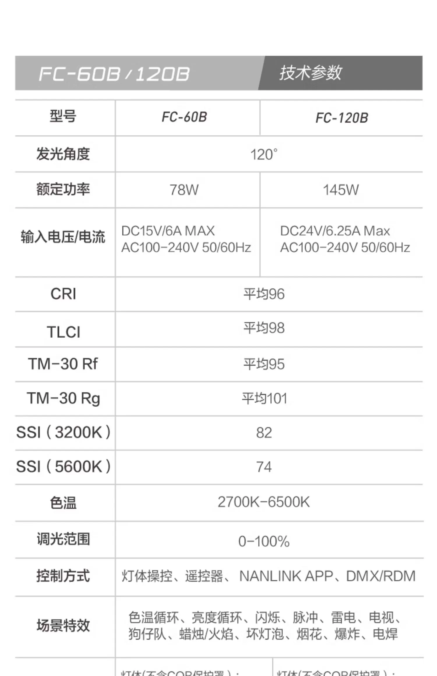 FC60B 配備了 1.4 英寸螢幕的內建控制介面,並且支持透過 NANLINK 應用程式進行藍牙控制,還可選擇使用 WS-TB-1 傳輸器或 WS-RC-C2 遙控器進行遠程控制,適合各種規模的拍攝場景。